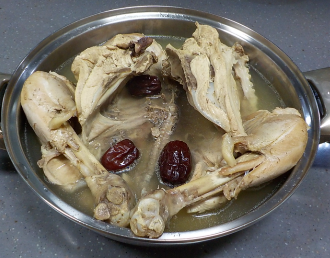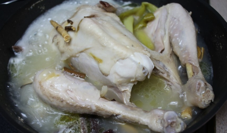 - 국물이 끓으면 닭을 중간 불에서 약 1시간 30분 동안 끓여줍니다.