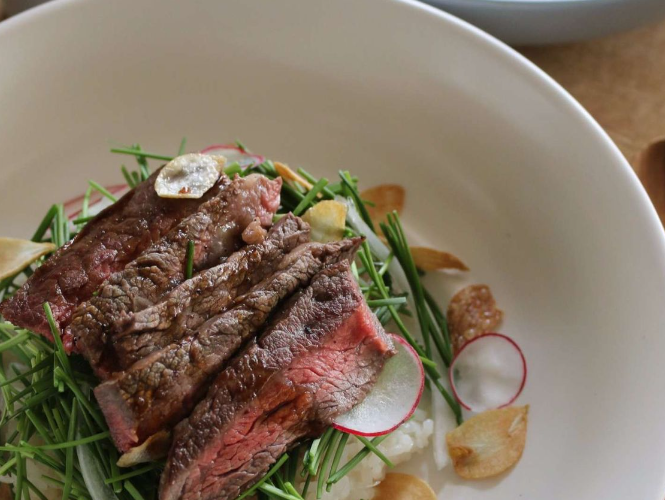 1) 소고기 스테이크는 고기 부위와 두께에 따라 적절한 크기로 썰어줍니다.
