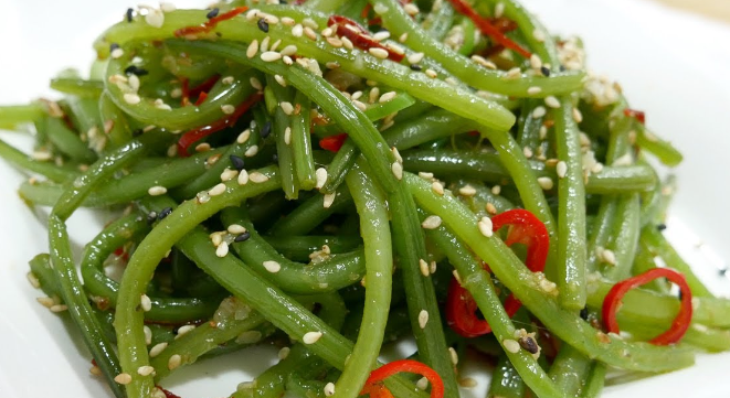 단계 1: 고구마줄기를 먼저 준비합니다. 고구마줄기는 적당한 크기로 자릅니다.