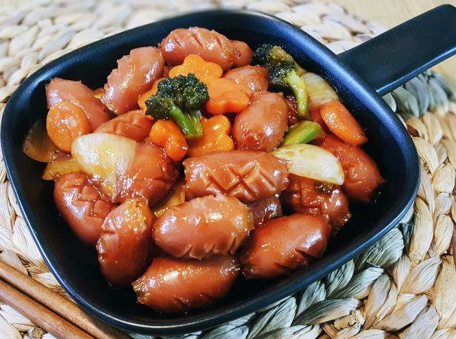 소세지야채볶음 레시피 팬에 식용유를 두르고 마늘을 볶습니다. 마늘이 볶아 질 때 소세지를 넣고 볶아주세요. 그 후 야채를 넣고 볶아줍니다. 볶음 양념을 넣고 볶아 마무리합니다.
