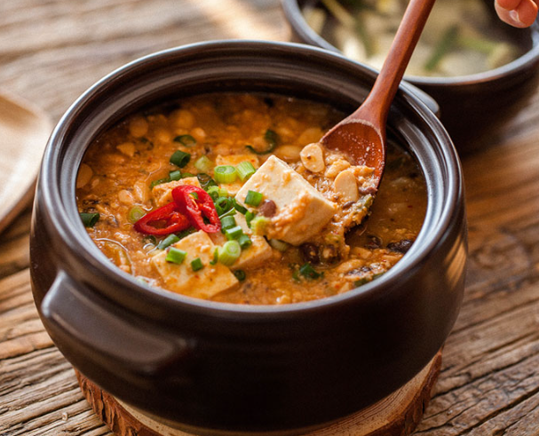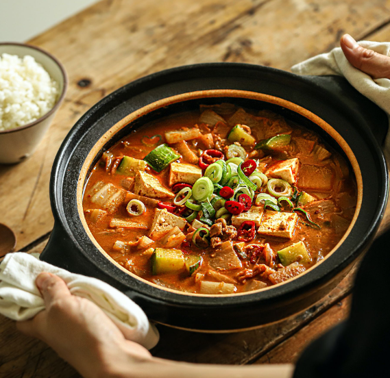 청국장은 고단백, 저지방, 비타민 및 미네랄이 풍부하며, 장 건강에 도움을 줄 수 있는 발효식품입니다. 유익한 미생물과 장 건강에 도움을 주는 발효 프로바이오틱스도 함유하고 있습니다. 매운 양념이 신진대사를 촉진하고 신선한 야채와 함께 섭취하면 더욱 건강한 식사가 됩니다.