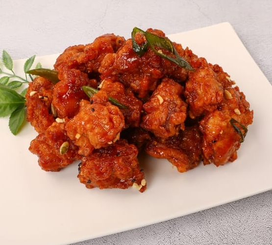 닭강정은 바삭한 튀김 피부와 부드러운 닭고기가 만나 환상적인 한식 요리입니다. 한국의 대표적인 안주 중 하나로, 소주나 맥주와 함께 즐기기 좋습니다. 어린이부터 어른까지 모두가 좋아하는 요리 중 하나입니다.