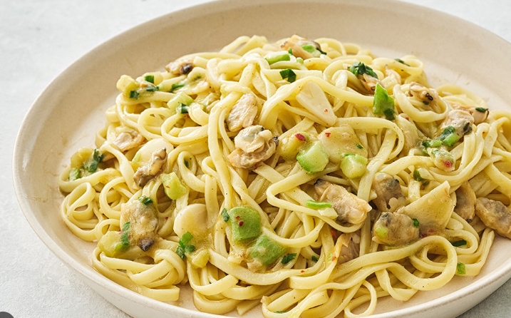 - 파스타를 팬에 옮기기 전에 조리 수분을 흔들어내어 물기를 제거하세요. 이렇게 하면 오일과 잘 어울립니다.
