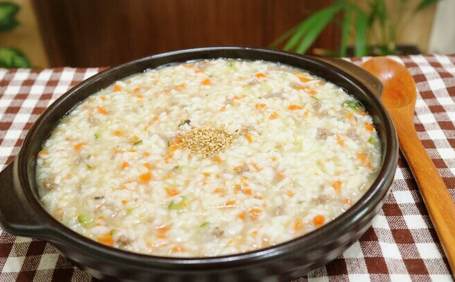 냄비에 물을 끓이고 쌀을 씻어 넣어주세요. 물이 끓으면 야채와 다진 마늘, 다진 생강을 넣고 섞어줍니다. 중불에서 약 30분 동안 끓입니다. 야채와 쌀이 잘 익을 때까지 중간 중간 저어주세요.