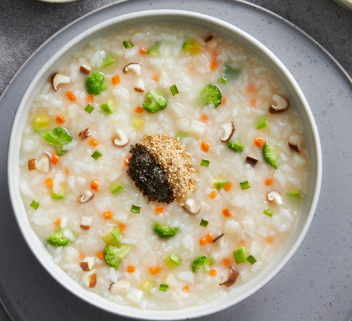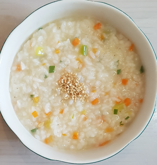 야채죽을 그릇에 담고, 위에 소금과 참기름을 조금 뿌려 더 맛있게 즐기세요. 야채죽은 아침 식사나 저녁 식사로 좋습니다. 온기를 느낄 수 있는 건강한 식사가 될 것입니다.