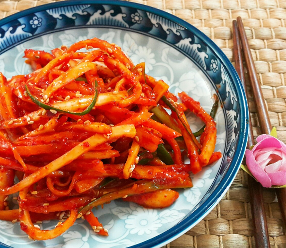 도라지무침은 상큼하고 시원한 한국의 전통 반찬 중 하나로, 도라지를 활용하여 만드는 요리입니다. 여름에 특히 인기 있는 음식 중 하나입니다.