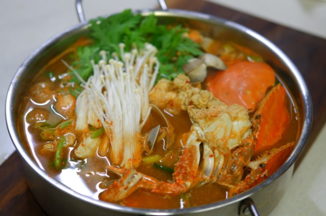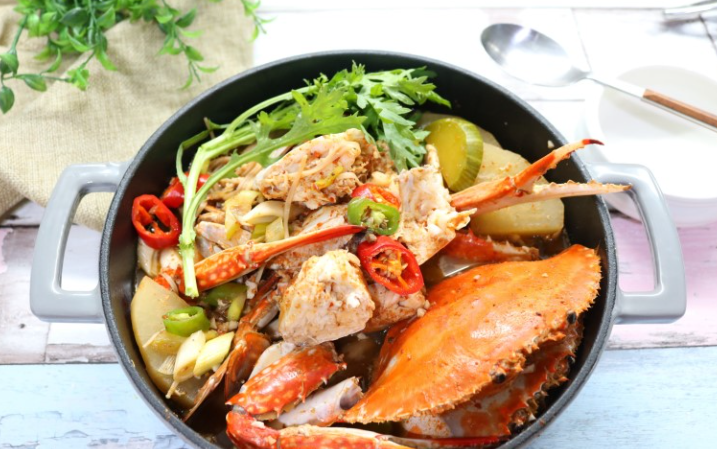 꽃게탕은 꽃게를 주재료로 한 건강하고 맛있는 한식 요리입니다. 풍부한 국물과 매콤한 맛이 특징입니다.