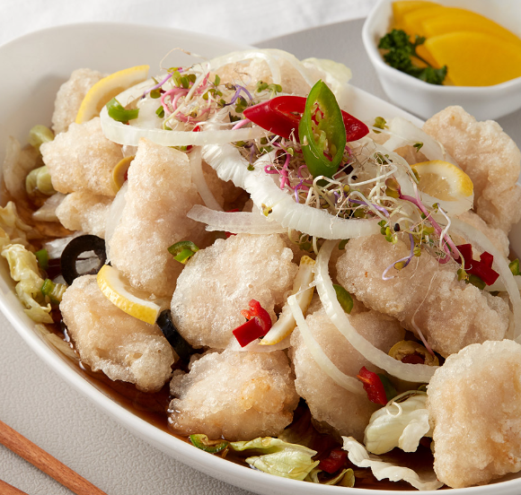 유린기는 부드럽고 고소한 맛이 일품인 중국 요리로, 특히 고기와 채소가 함께 어우러진 요리입니다.