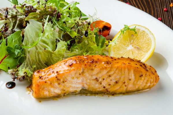 연어스테이크는 고기와 비슷한 질감을 가진 연어를 이용한 요리로, 부드럽고 고소한 맛이 특징입니다.