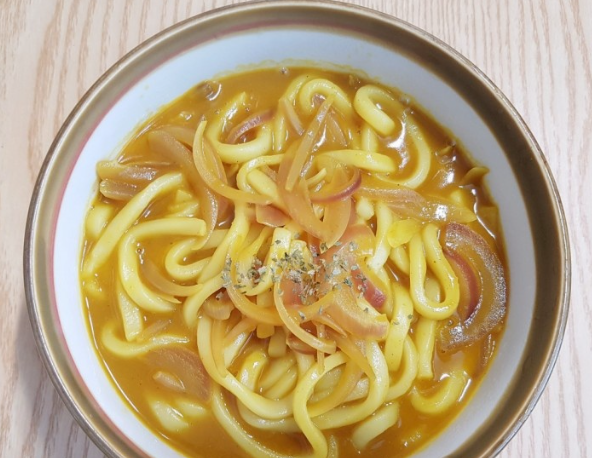 - 그릇에 우동 면을 담고 위에 카레를 부어준다.