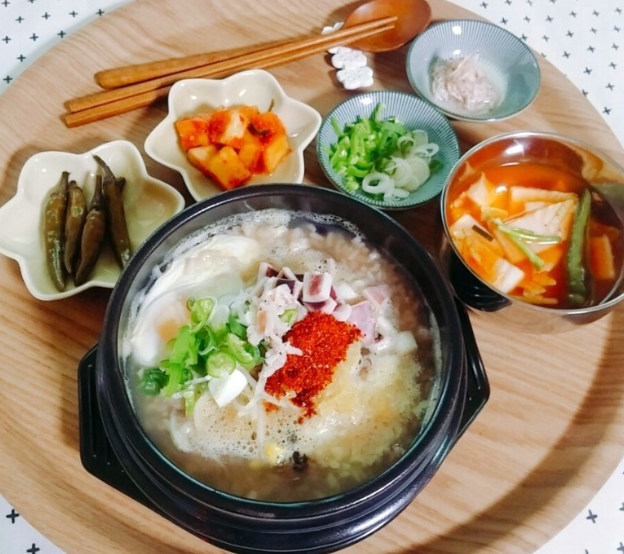 - 국물에 통깨를 뿌려 맛을 낸다.