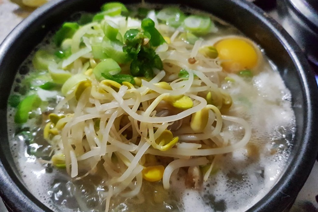 - 콩나물을 넣고 중간 불에서 끓인다.
