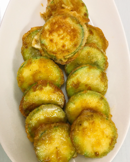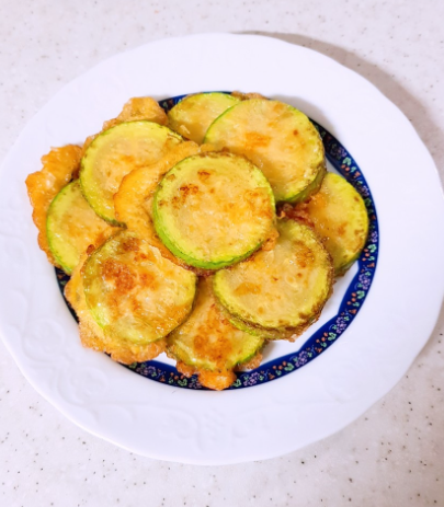 부드럽고 바삭한 애호박전의 맛을 즐길 준비가 되었습니다.