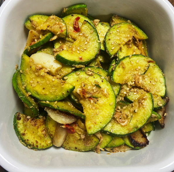 - 마지막으로 깨와 소금, 후추로 간을 맞추고, 고루 섞어준 후 볶아낸 애호박볶음이 완성됩니다.