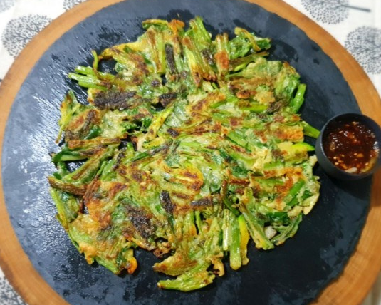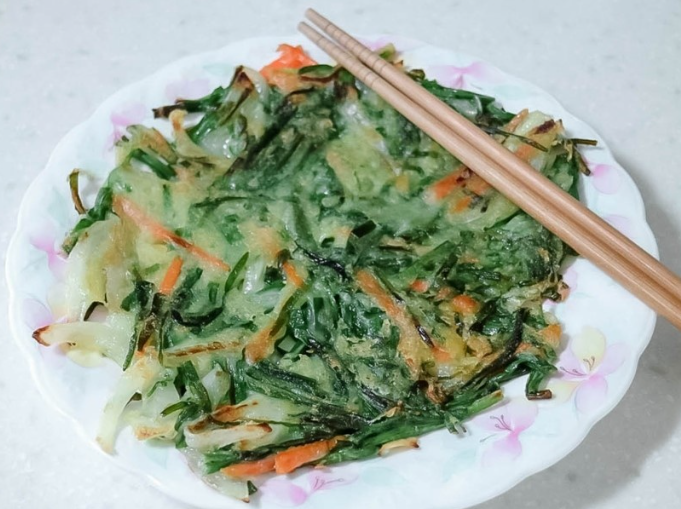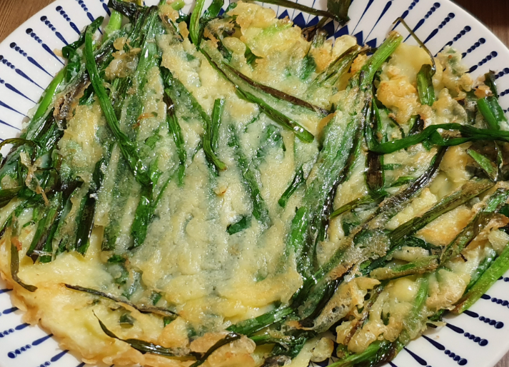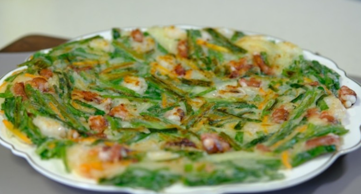 - 팬에 식용유를 두르고 중간 불에서 부침개 반죽을 부어서 바삭하게 구워냅니다.